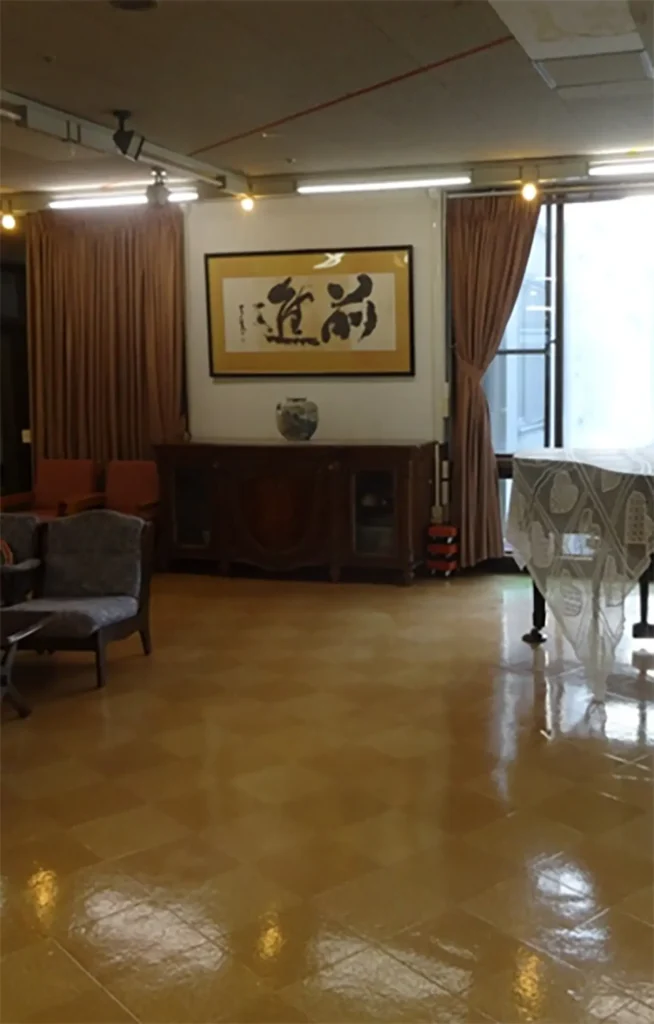 歌のクラブやコンサート、交流会の会場として使用しています。中央のグランドピアノは、函館出身のピアニスト伊藤亜希子様より寄贈されたもので、幼少の頃に愛用していた思い入れのあるピアノだそうです。その、伊藤亜希子様のリサイタルはもちろんですが、平均すると月2回の割合で様々なコンサートが開催されています。